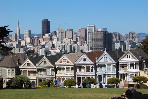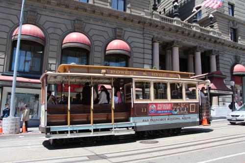 einer Reihe wunderschöner, bunt bemalter Häuser. Anschließend wollen wir eigentlich noch bis zur Golden Gate Bridge laufen, müssen uns aber ob unserer geschundenen Füße geschlagen geben und nehmen das Cable Car zurück in die Stadt. Eine abenteuerliche Fahrt über die Hügel San Franciscos, bei der nochmals alle Viertel an uns vorbeiziehen.