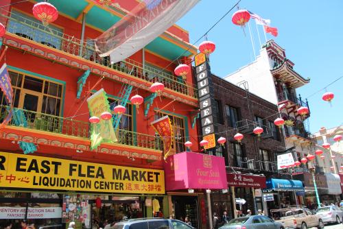 Wir treffen uns mit unserem Couchsurfer nach einem Frühstück auf einem Hügel mit Blick ueber San Francisco. Unsere Park-Panik war zwar nicht unbegründet, löst sich aber trotzdem in Luft auf. Steven hat einen Guest-Parking für uns. Was für ein Glück! Außerdem stattet er uns mit einem Stadtplan und einem Haufen Informationen aus und so starten wir bestens vorbereitet auf Stadtbesichtigung: über Union Square und Theater District nach Chinatown.