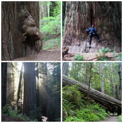 Nach langer Fahrt sind wir da: im Redwood-Gebiet. In einer abenteuerlichen Fahrt auf einer engen ungeteerten Waldstrasse durch einen Teil des Redwoodbestandes holen wir uns die ersten Eindrücke von diesen Riesen.