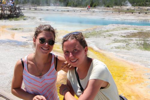 Unsere Zeit im Yellowstone ist knapp bemessen: In zwei Tagen wollen wir so viel wie möglich vom Park sehen! Keine leichte Aufgabe, wenn man bedenkt, dass er nochmals um einiges größer ist als Yosemite. Glücklicherweise kommen wir an einem Sonntagnachmittag an, wodurch wir den Touristenmassen wenigstens etwas entgehen und noch einen Campingplatz ergattern können. Rudimentär wie immer mit Plumpsklo und ohne Dusche. Eine Wasserpumpe kommt auf 20 Campingplätze, Zahnpastaschaum und Spülwasser müssen aufgrund der Bärengefahr ins Kompostklo entsorgt werden - tiefe, schöne Einblicke vor dem Schlafengehen.