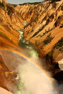 und der Yellowstone Grand Canyon auf dem Programm. So ein Glück, dass wir da noch hingefahren sind: 50.000 Basketbälle voll Wasser donnern hier pro Sekunde in die Tiefen des Canyon und schlängeln sich durch das glebe Gestein. Wahnsinns-Ausblicke, vor allem, als wir direkt über den Lower Falls stehen und die hochstehende Sonne einen Regenbogen in die aufspritzende Gischt malt - das reinste Kitschpostkartenmotiv!