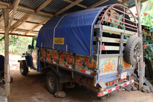 Der Truck-Van-Hippibus, mit dem er uns naemlich abholte, war nicht nur wunderschoen anzusehen und uralt, sondern hatte weder einen funktionierenden Anlasser, noch ganz koschere Tueren. Diese mussten naemlich durch einen Schieberiegel von innen heraus mit Kneifzangen zusammengeklemmt und gehalten werden. Klingt recht einfach, war aber jeweils eine Prozendur auf beiden Seiten von circa 5 Minuten. Mit Alibisitzgurten gings dann also los ins Ungewisse.